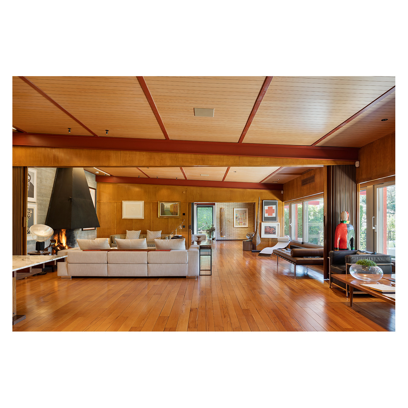 Originally designed in 1961 by Francisco de Asís Cabrero, a pioneer of Spanish modernism, this 700 m² residence embodies a rational yet organic approach with exposed concrete, wood, steel, and brick. Recently restored by architect Diego Gronda, the project sought to preserve Cabrero’s architectural essence while adapting the home for contemporary living.