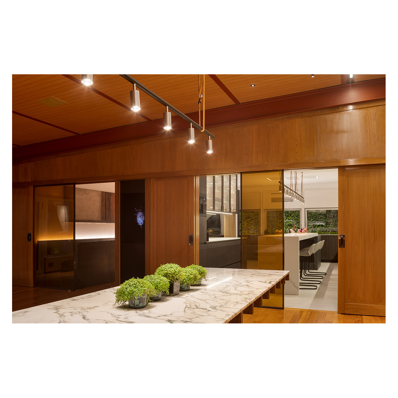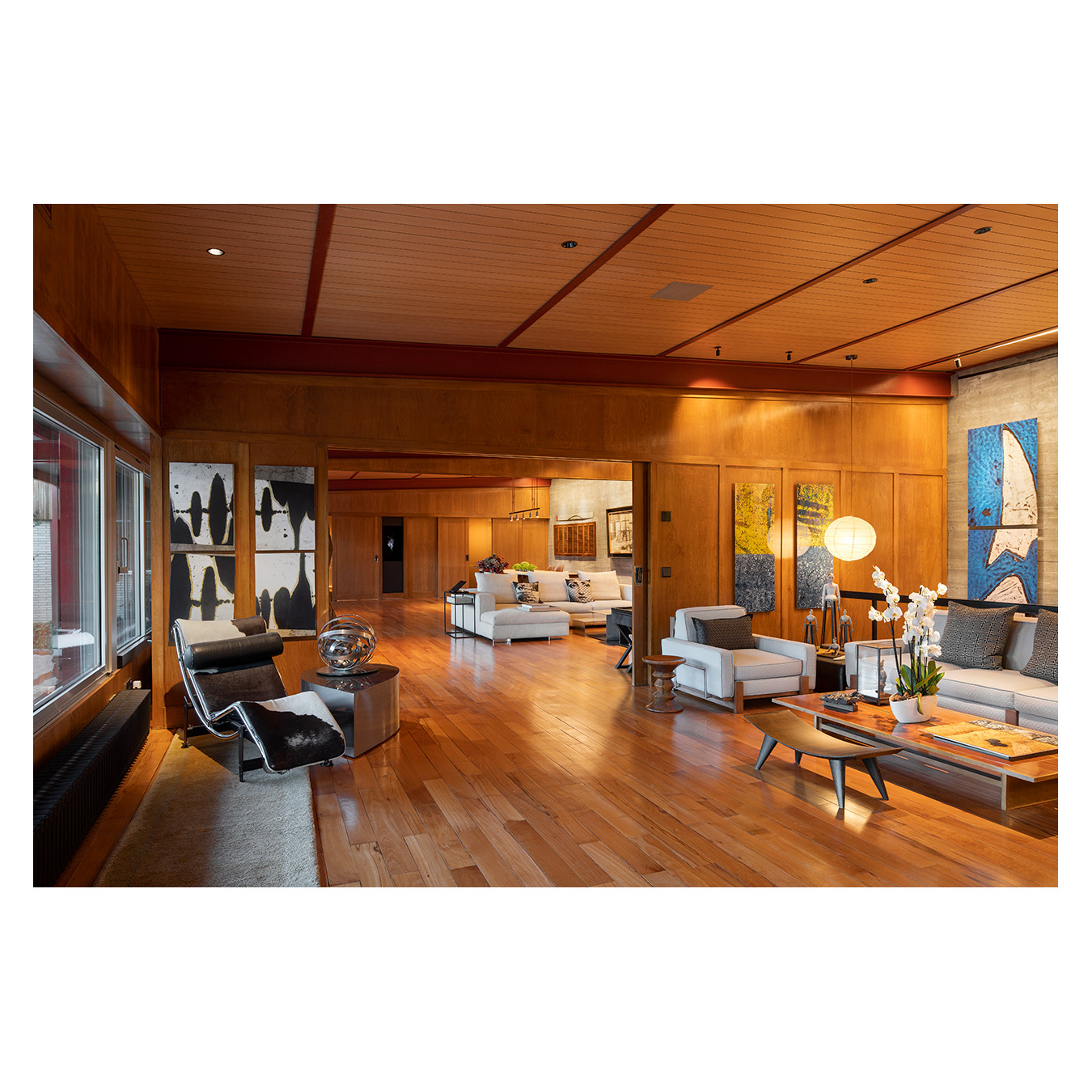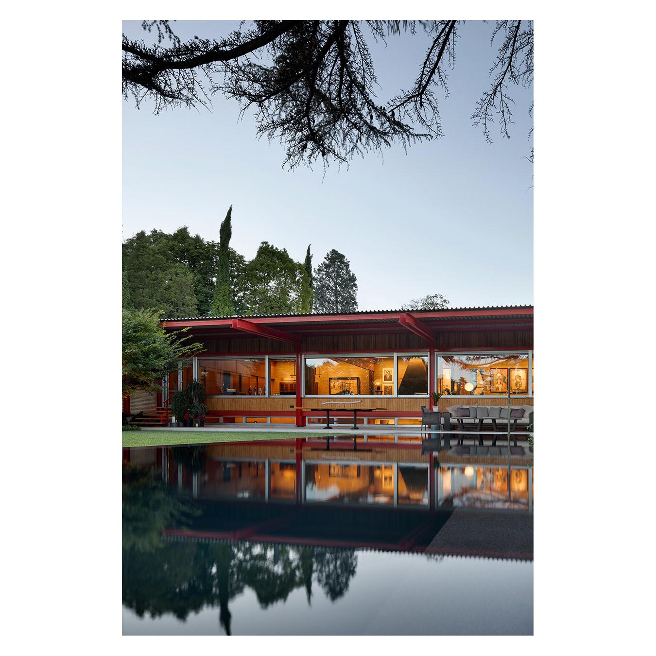 Key interventions included relocating the pool to create a reflecting surface beside the house, integrating discreet new systems, and restoring original details such as red steel beams, sliding wooden partitions, and Bauhaus-designed radiators. The result is a sensitive balance between heritage preservation and modern comfort, reaffirming the home’s unique blend of modernist rigor and Japanese-inspired spatial concepts.