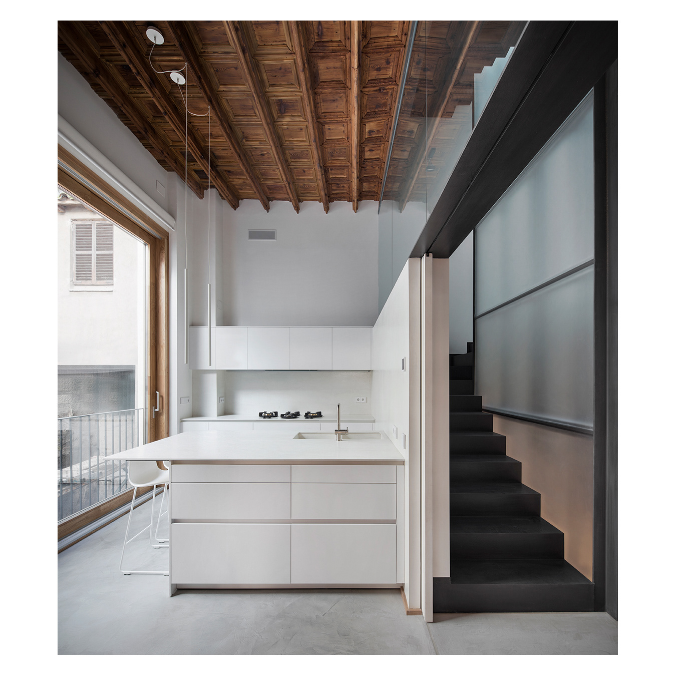 Photographed with a focus on spatial continuity and preserved details, the images highlight the dialogue between the original architectural elements and the renewed interventions.